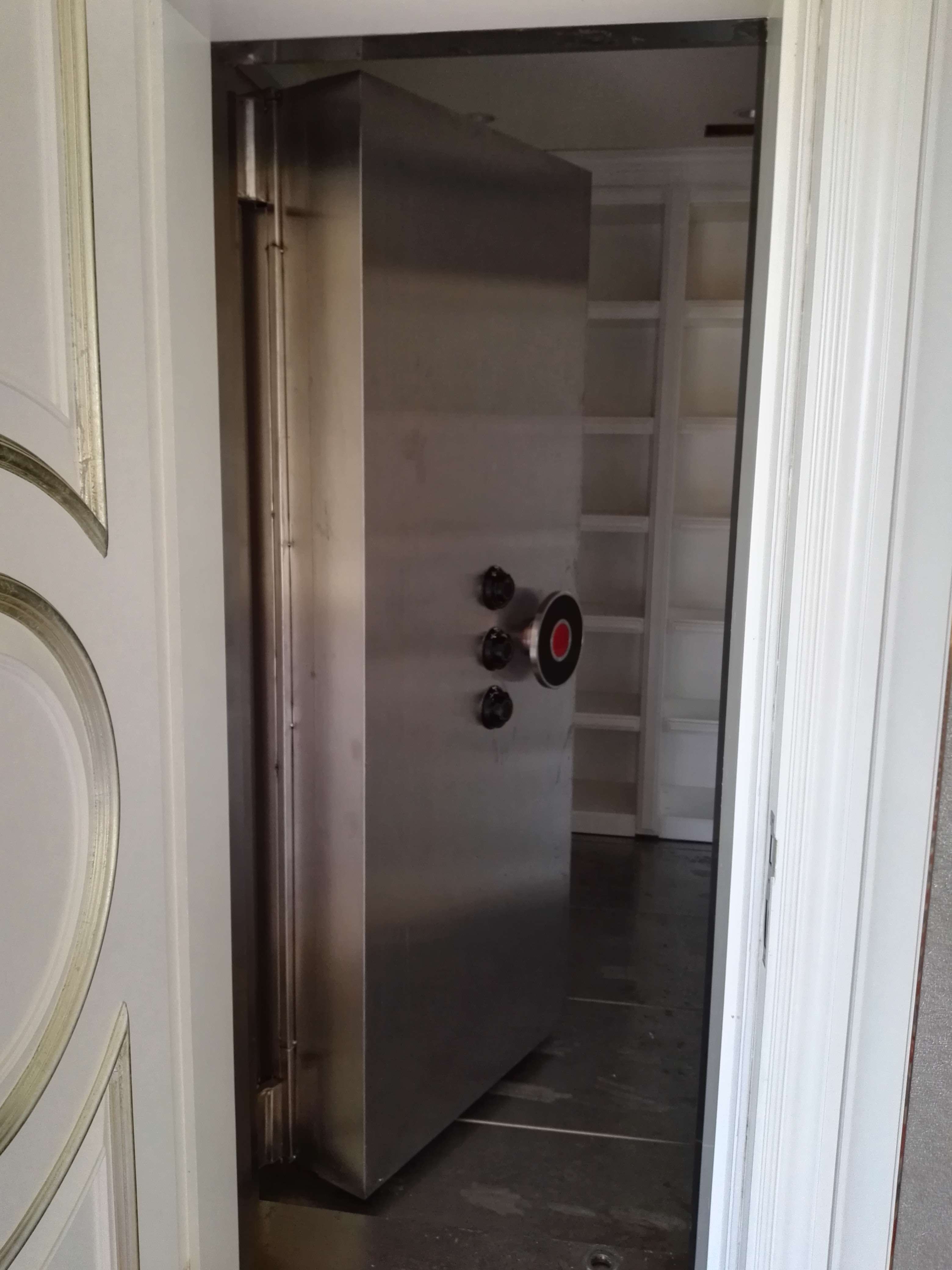 密室門外蔭蔽裝修與周邊裝修混為一體,密室門鎖具可加裝指紋密碼鎖或電子密碼鎖和遙控裝置,鎖具認證敞開時刻≤2秒,密室門敞開時刻≤5秒,當緊急情況發作時可從容敏捷敞開金庫密室門,進入密室;密室門外加裝蔭蔽裝修,爭取對外示警時刻,即使不法分子發現蔭蔽裝修,面對鞏固安全的金庫密室門,也無計可施;有用的維護生命和財產安全。